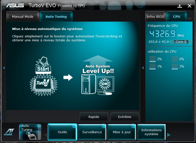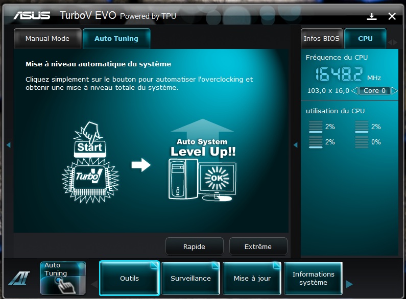 mais je viens de m’apercevoir que meme avec un oc depuis le logiciel asus suite 2 au reboot sa a du mal a ce lancer je m’explique