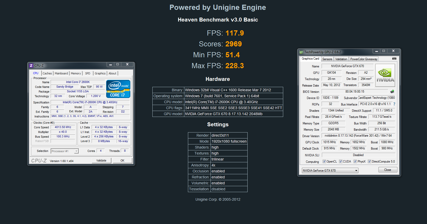 Voici pour moi avec le 2600K à 4ghz et la gtx 670 à stock :