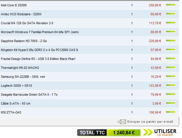 Hormis le DD: préfère un GREEN de chez SEAGATE BARRACUDA, les perfs sont dignes d'un black, ce qui amère une économie non négligeable!