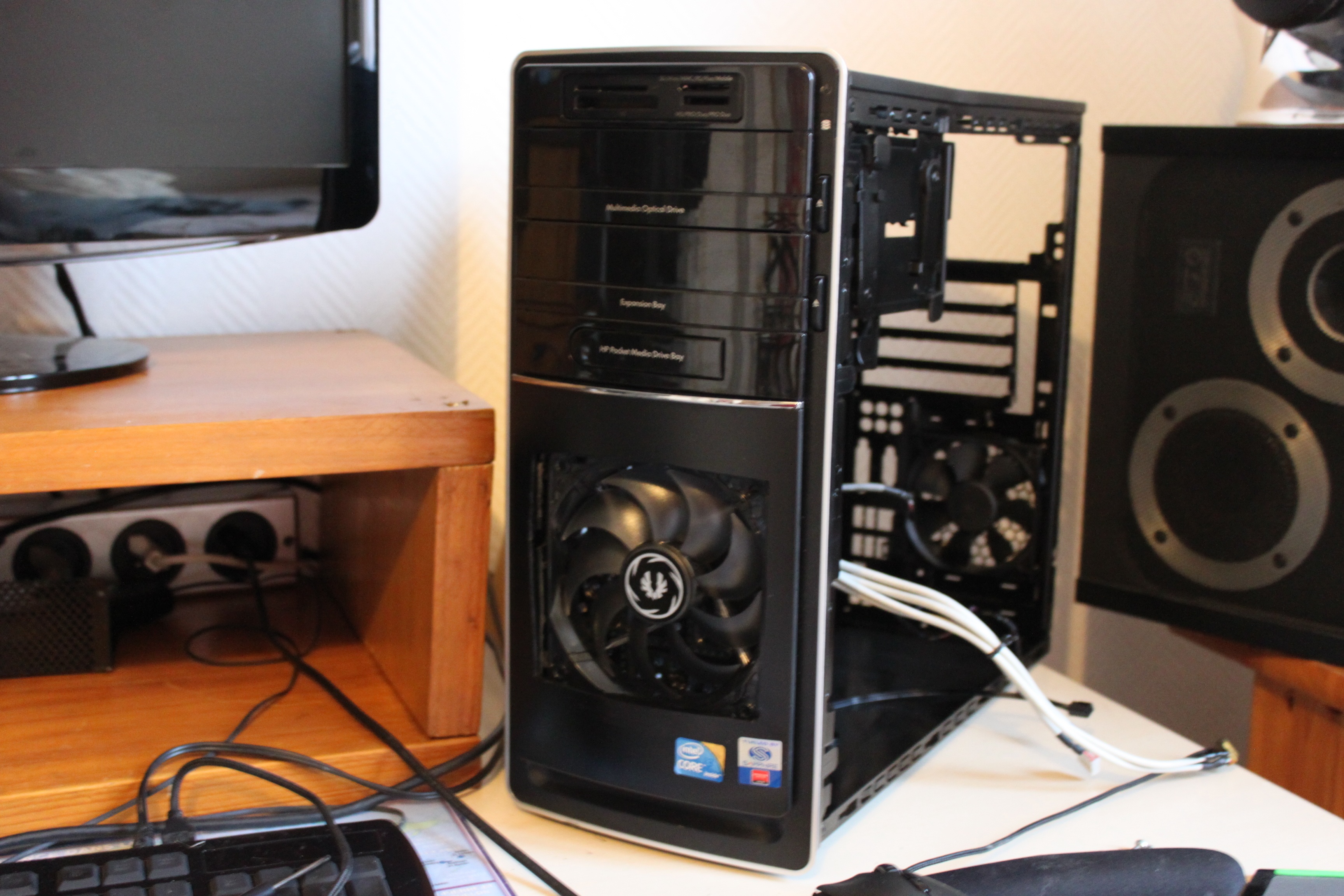 Puis découpage de la façade pour ajouter un ventilateur bitfenix spectre bleu + peinture du cache et de l'intérieur :