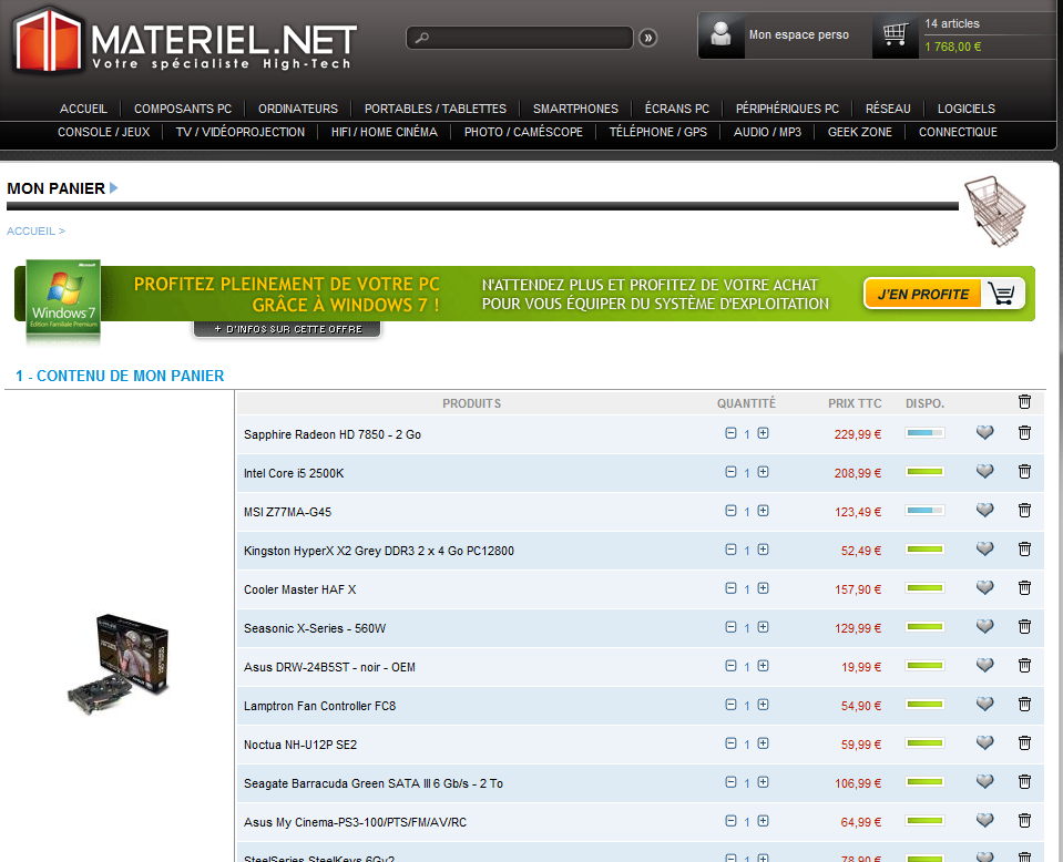 Bref, que du bon matériel ayant peu servi, monté par des professionnels il y a à peine 1 an, facture à l'appui ! Un ensemble très cohérent et puissant pour tout faire en full HD: multimédia, jeux 3D, internet, graphisme, bureautique.