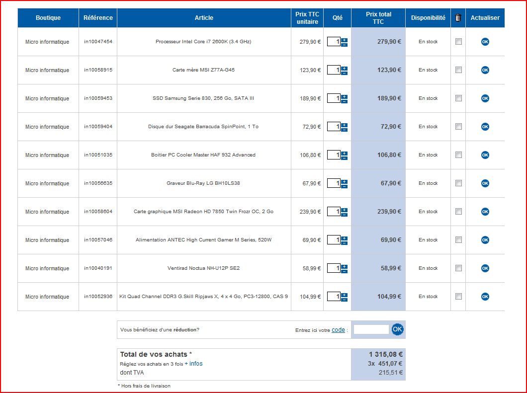 Intel core I7 – 3770 / environ 285€ / http://www.amazon.fr/Intel-Bridge-Proce ... B007RMH1WY