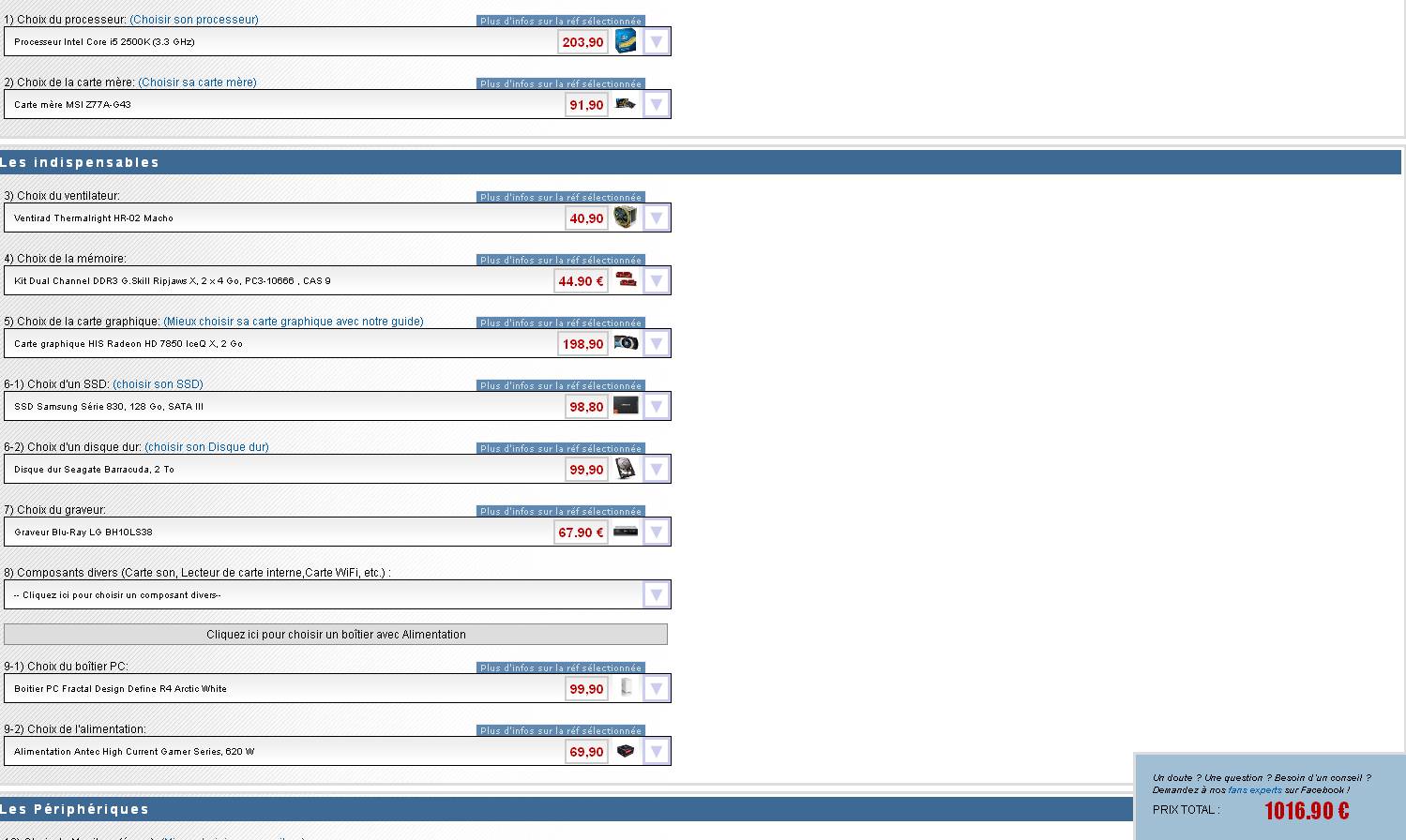 J'ai déjà essayé mais c'est mon premier et j'arrive toujours dans les 1500 € au final, ce qui est un peu trop et je ne sais comment bien choisir les éléments. :marteau: