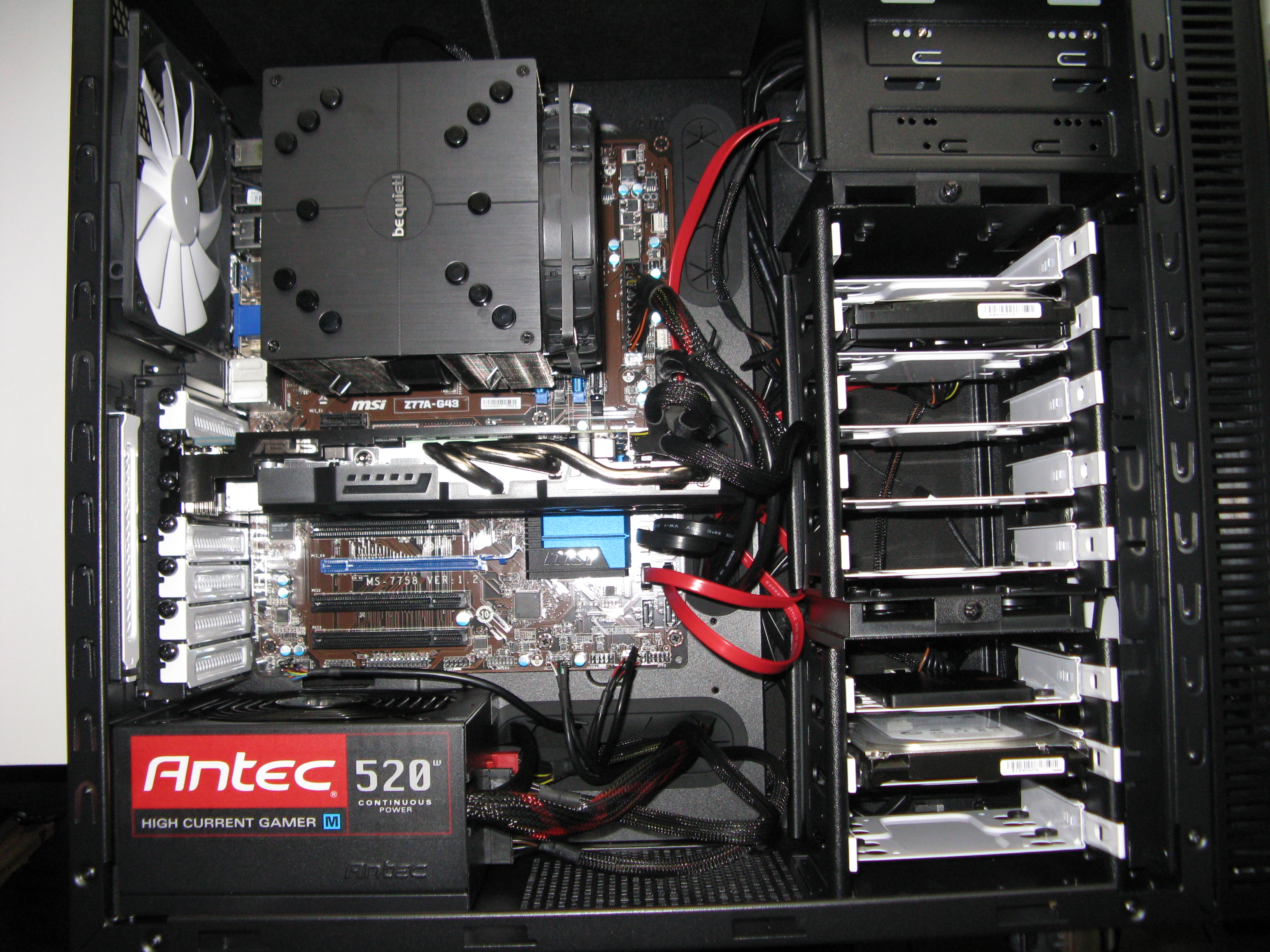 Je met une petite photo, j'ai un peu arrangé le cablage par rapport à la photo, mais il reste encore pas mal de monde autout de la tete de la cg : alims 2x6 pins pour la cg, satas, ect...