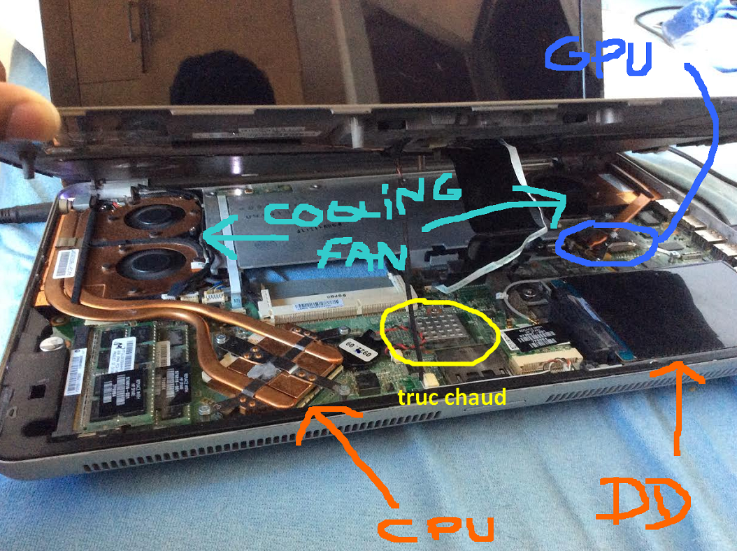 Voila, j'ai récupéré un (vieux) HP Envy 15 1030-EF de 2009 ou 2008, qui chauffe beaucoup (au niveau du processeur, du chipset graphique et du DD et d'un autre truc, cf images)