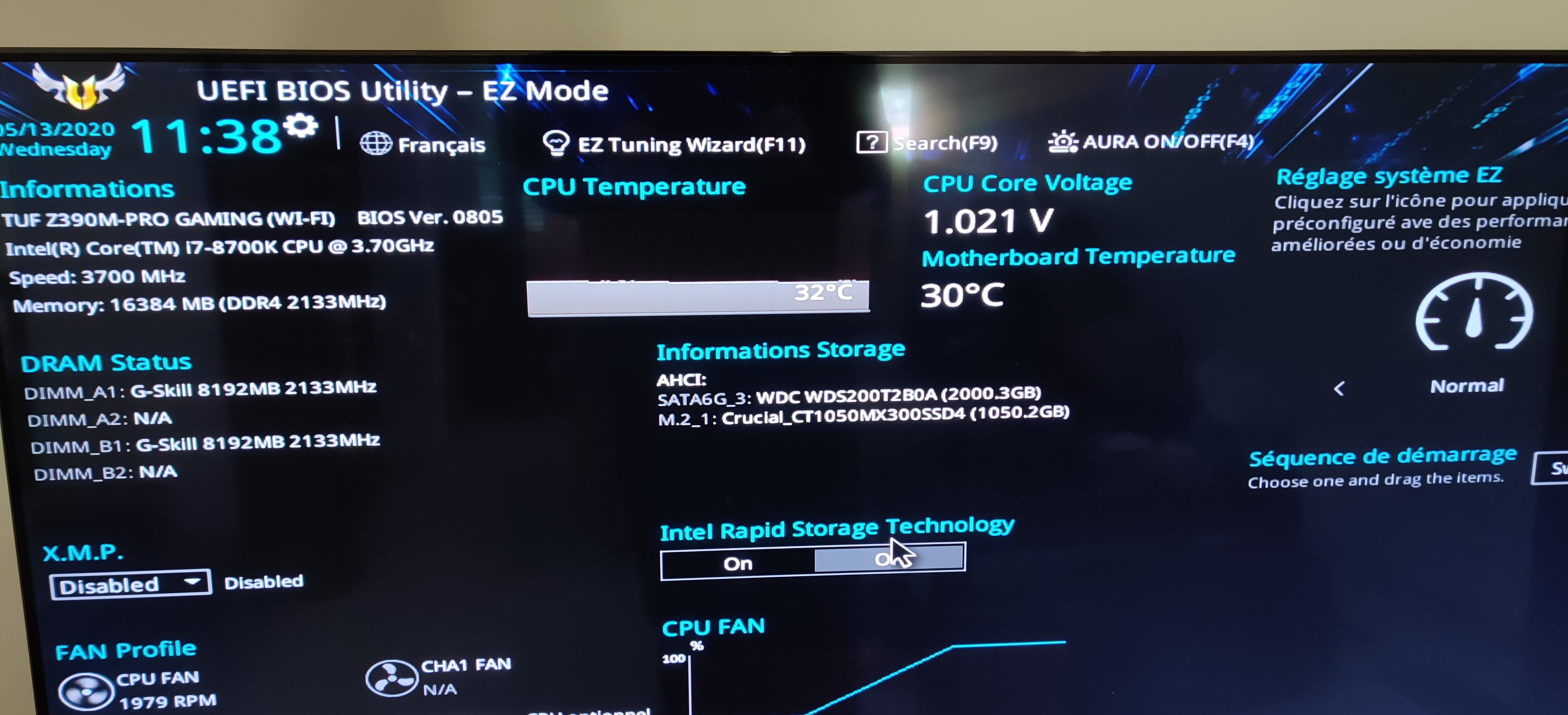 Après 1h d'utilisation sans problème, reboot sur bios avec message unexpected problem. Et mon disque dur Windows n'est pas détecté.