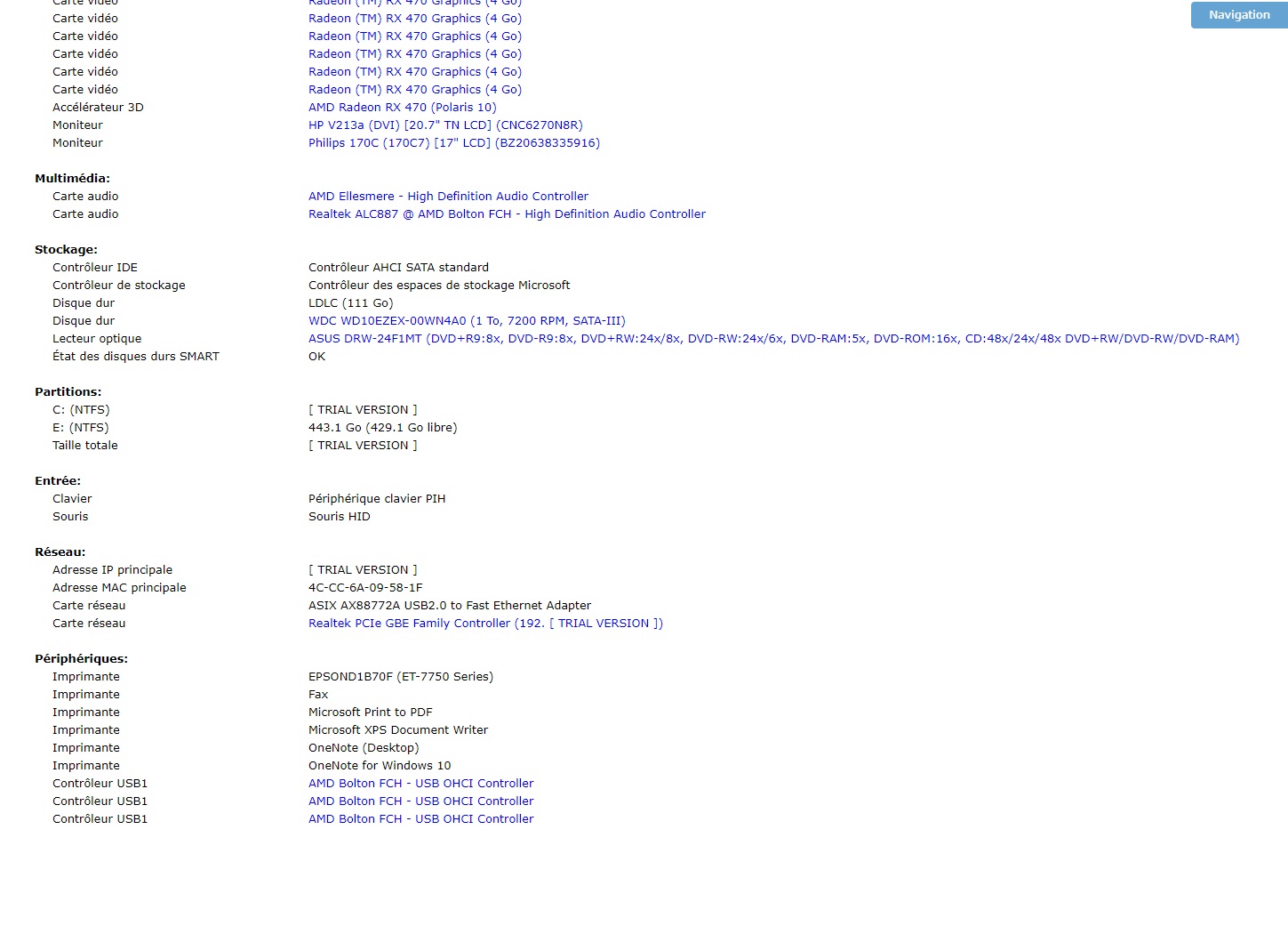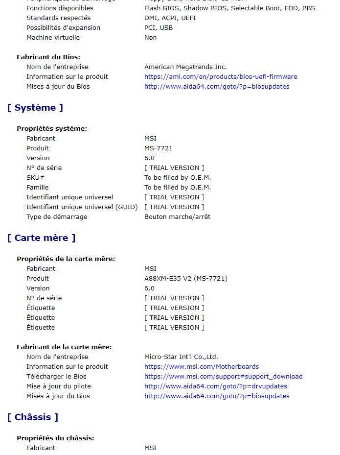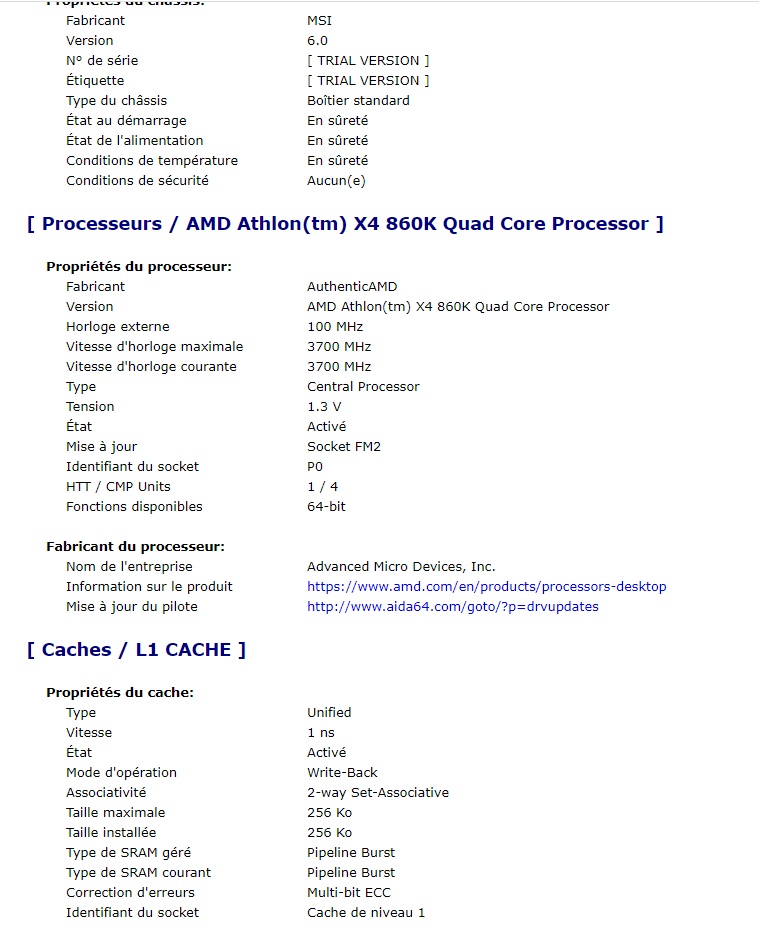 Je vous poste mon récap via AIDA64 en pièce-jointe. ( désolé pas réussi à mettre en entier )
