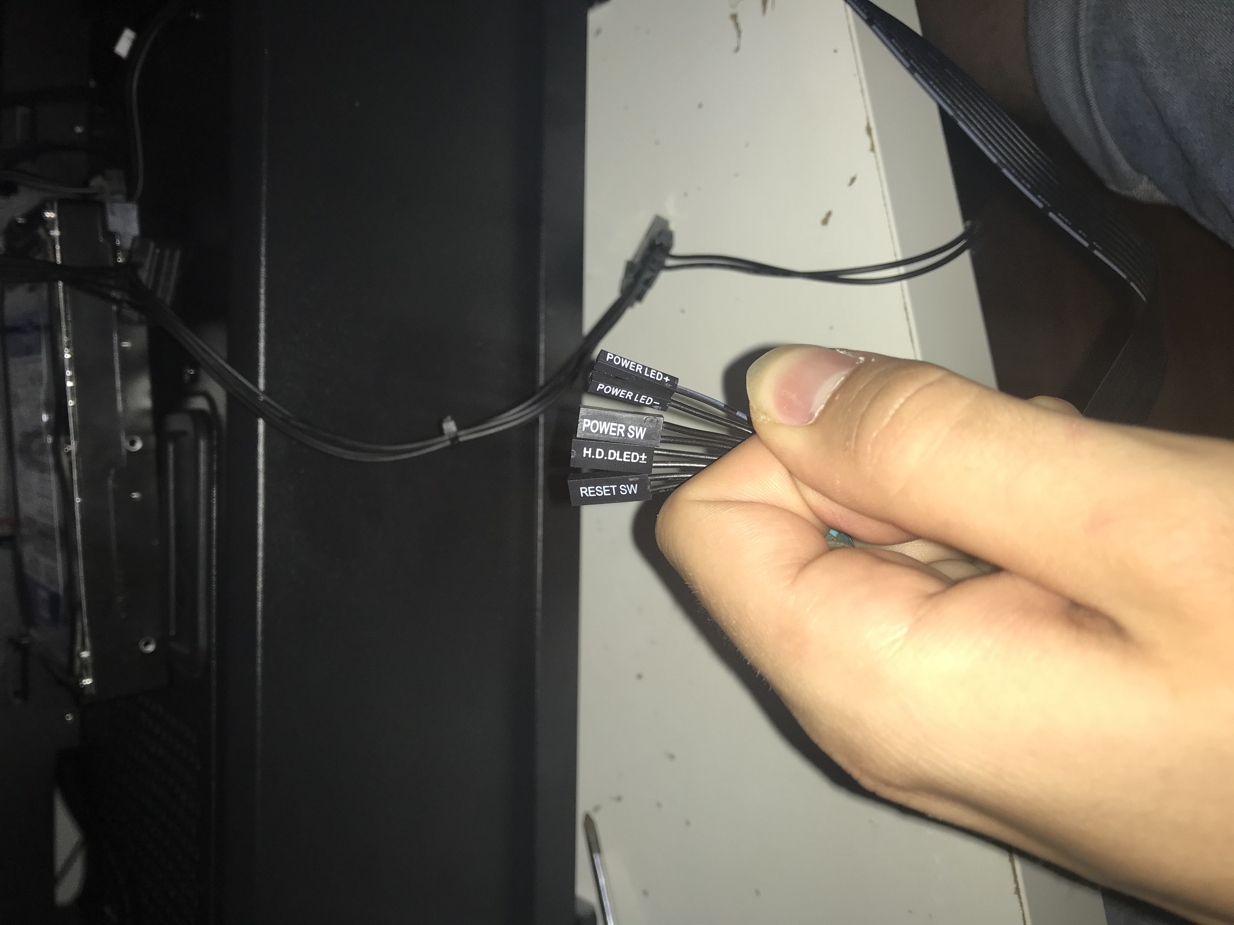 Bref après l’enfer de montage à cause d’une carte mère mal adapté pour le boîtier. Je commence mon câble management et la je dois mettre mon câble pour allumer le pc sauf que entre temps ce n’est pas le même câble entre l’ancien boîtier et le nouveau.