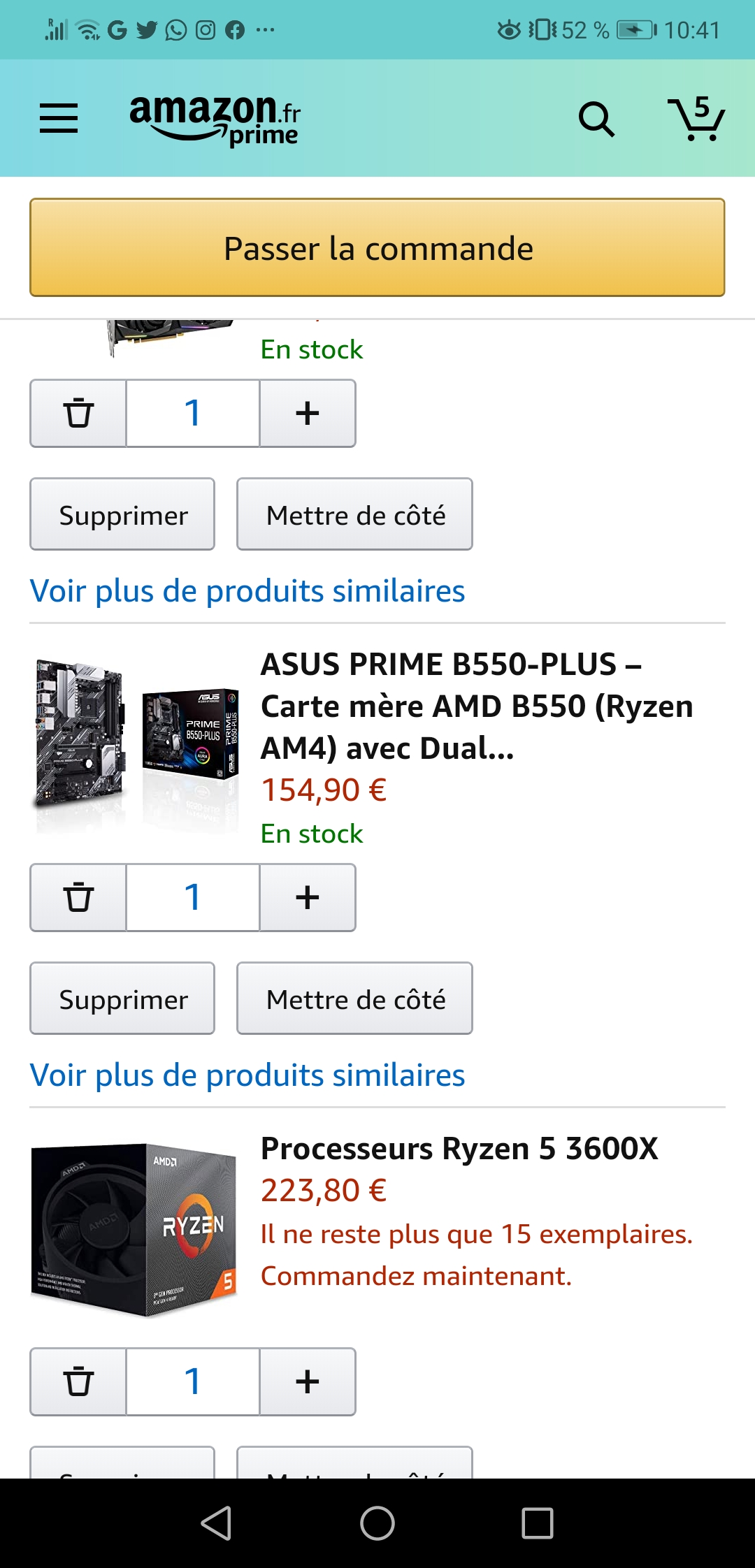 Il manque la mémoire et un SSD/disque dur dans ta config. ça serait plus simple d'utiliser la fonctionnalité de partage de lien du panier plutôt que des captures d'écran
