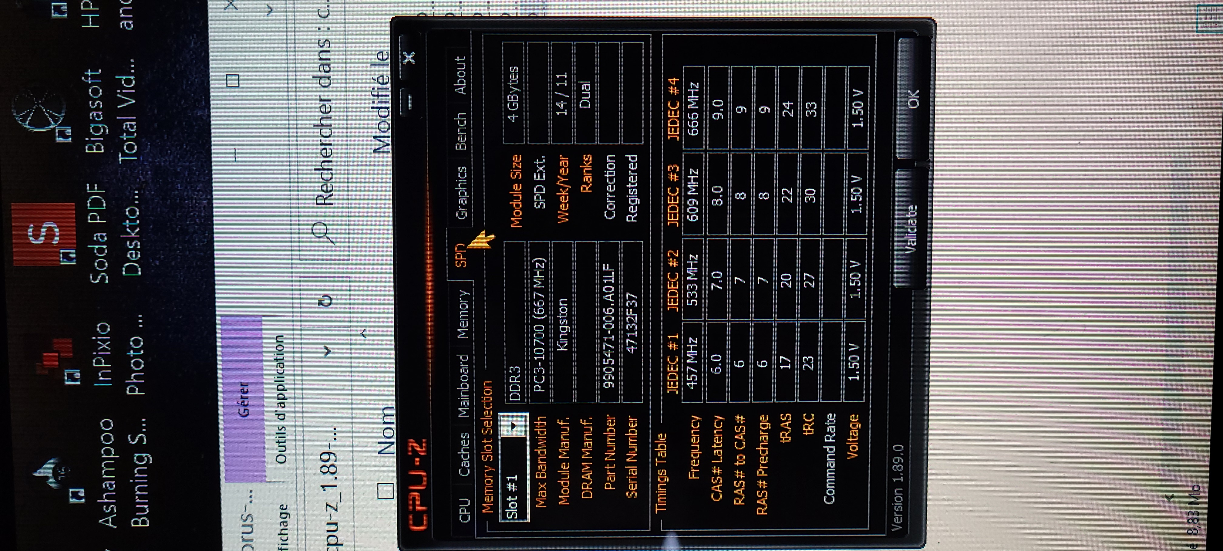 500 GO SSD VOICI LE FICHIER MANQUANT env 500 euros 3 banques RAM soit 12 GO après le pc se met en alerte si je monte plus en ram
