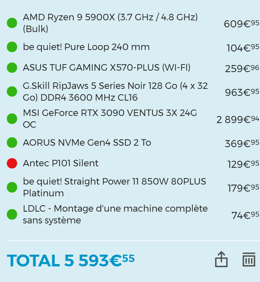 Par contre le nouveau Core i9-12900K est très performant pour les applications (plus cher et chauffe plus par contre), vu ton budget ça me semble le plus intéressant. On est sur un gain de plus de 50% par rapport au 11900K : https://www.lesnumeriques.com/cpu-proce ... /test.html