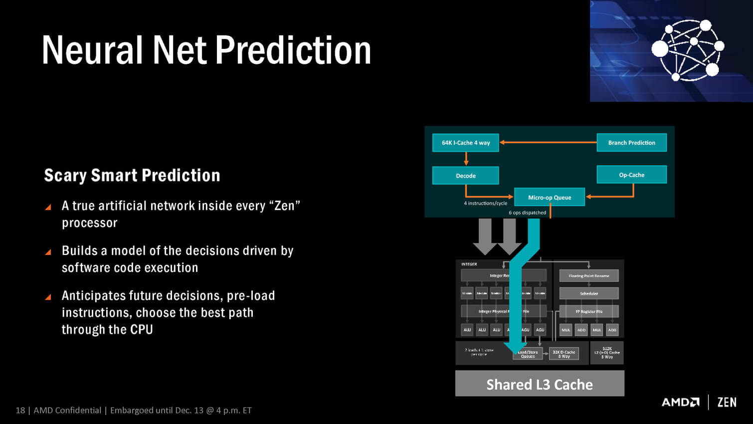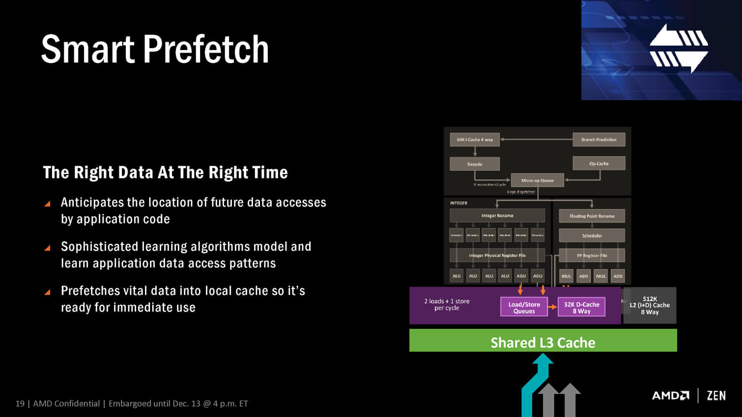 Neural Net Prediction et Smart Prefetch sont les nouveaux noms commerciaux des systèmes de prédiction et de prefetch (le système prévoit de manière intelligente les données à mettre en cache pour accélérer sa vitesse de calcul). AMD indique utiliser un réseau de neurones artificiels amélioré.