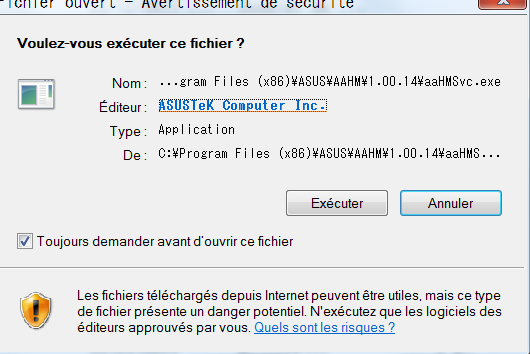 J'ai un avertissement de sécurité quand j'éxècute et parfois une fenêtre noir !!