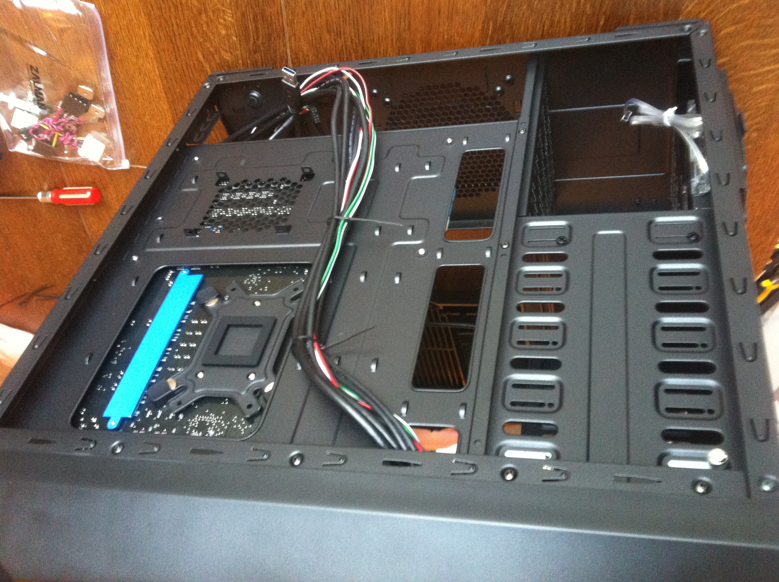 Il y a un sacrée bordel dans le cablage :o et le DD il faut le mettre dans l'autre sens pour que les connectiques ce trouve du coter du panneau droit quand tu regardes le pc de face.