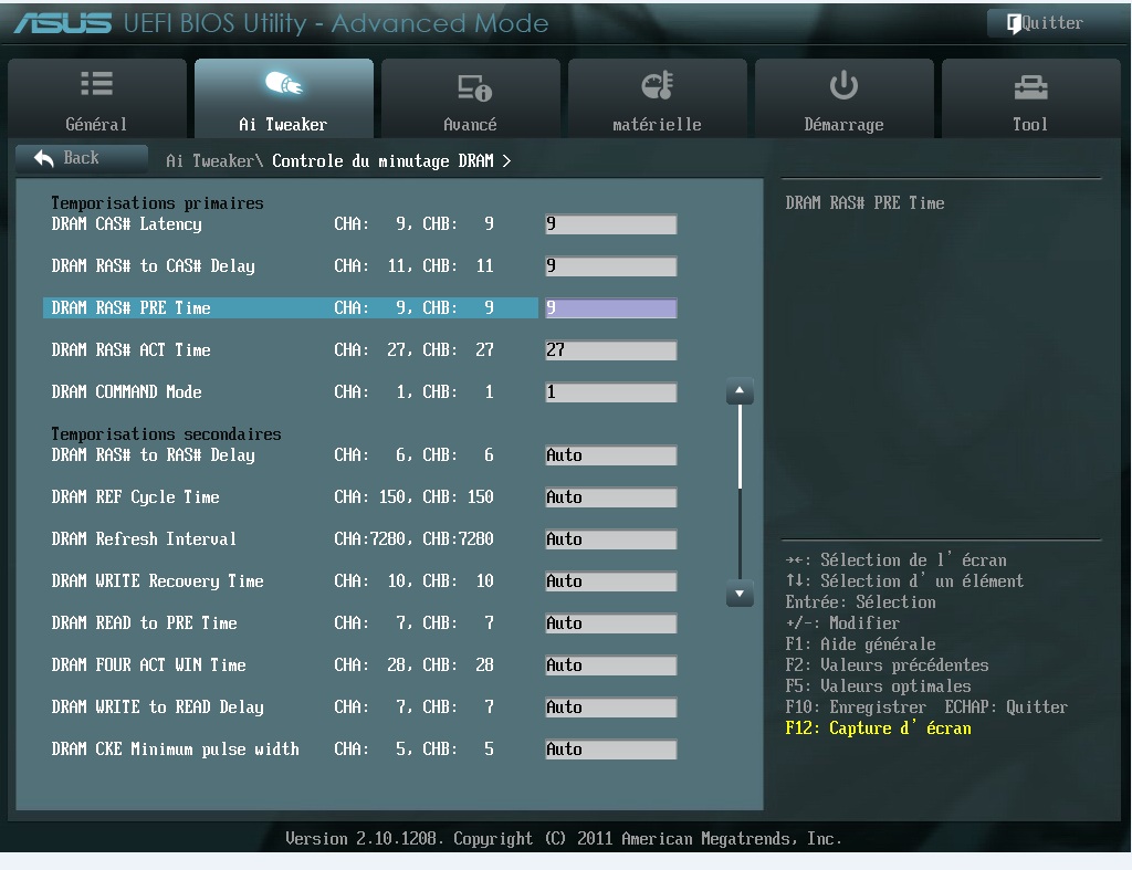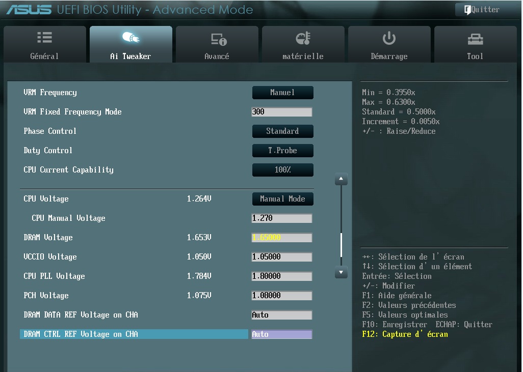 je vien de voir que dans le bios j'ai laissé la fréquence correspondant à vos RAM à 1600MHz et apparament la mienne est a 1866 MHz sa à un insidant si je l'ai laissé a 1600mhz ?
