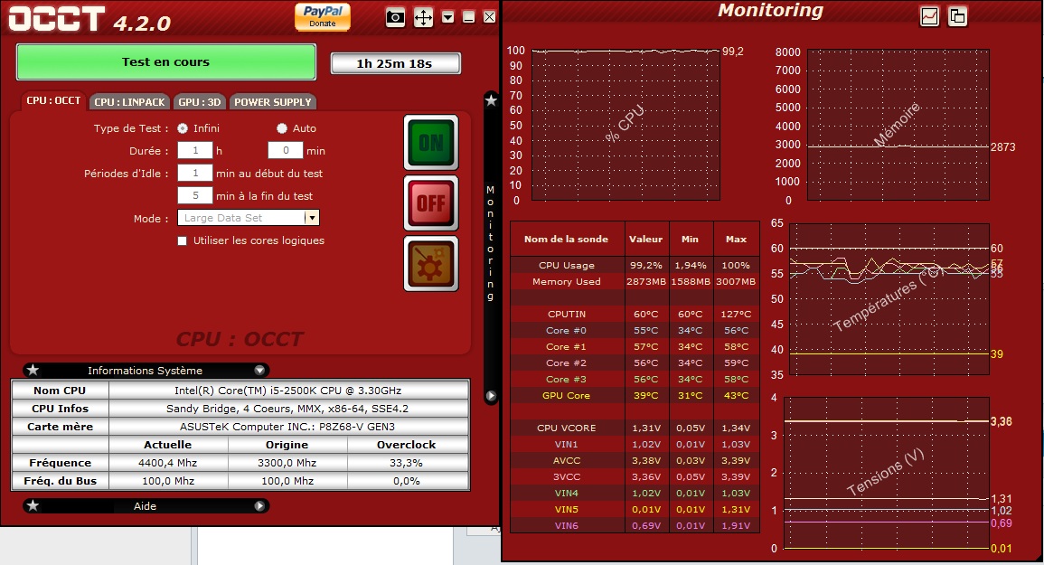je viens de oc mon i5 2500k @ 4.4Ghz vscore 1.30v après plus 1h de OCCT le vscore mini est a 1.31 et le max a 1.34 il est pourtant stable mais j'aime pas ce gros écart j'ai mon le vccio de 1.05 à 1.075 en essaye de stabilisé la tension mais bon dites moi qu'est que vous en pensez ?