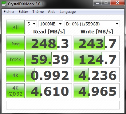 Je n'ai pas de photo mais je vous mets un screen de crystal disk mark avec le green et le raid de dinosaure