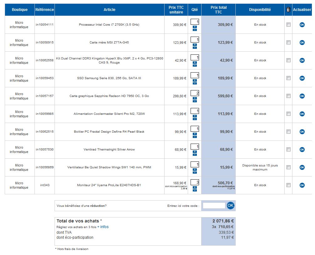 En gros je t'ai fais une cfg pr 2000e sur mat.net qui est le vpc le plus chère, tu px avoir facile 10% de moins en commandant chez amazon, qui propose en plus la Rolls des SAV (et de très loins).