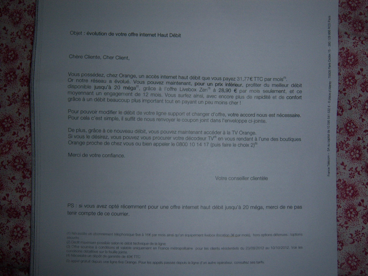 salut , je viens de recevoir une lettre d'Orange et ils me disent que je pourrais passer à 20 Méga et payer moins cher