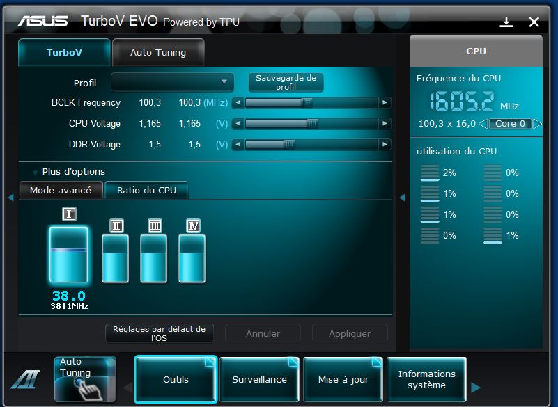 En outre je ne sais pas régler ASUS AI Suite II pour overclocker.