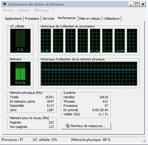 Je trouve que Adobe Pro est très gourmand en ressource mais comme je n'y connais rien je me pose des questions. En effet, lorsque j'ouvre Adobe Pro, dans le gestionnaire des tâches windows, l'UC utilisée est à zéro et la mémoire est à 6.70Go. Est-ce normal ?