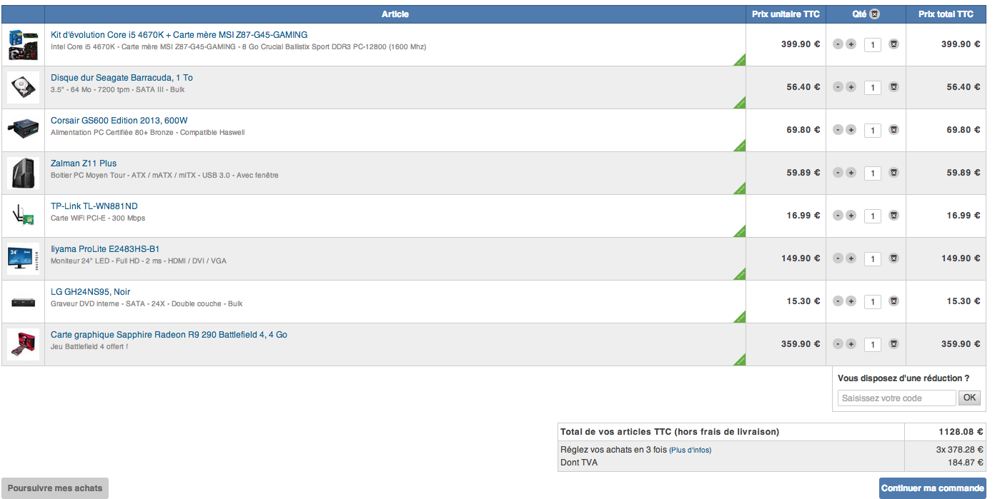 PS: Au tout début j'étais parti sur une MSI GeForce GTX 770 Twin Frozr OC GAMING 2GO, mais je un bon nombre d'FPS, donc aussi je voudrais savoir si entre la R9 290 il y a une grosse différence ou pas. ( Sachant que je ne veux pas dépassé plus de 1100euro car la je dépasse mais avec topachat on peut avoir un code promo de 5% )