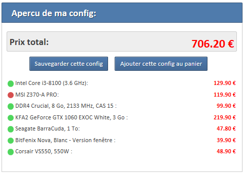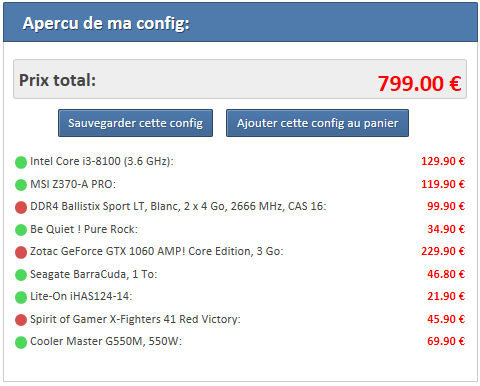J'ajouterais que si c'est trop cher, remplaces le 8100 par un G4600 (et la carte mère aussi du coup), plutôt qu'un 7100.