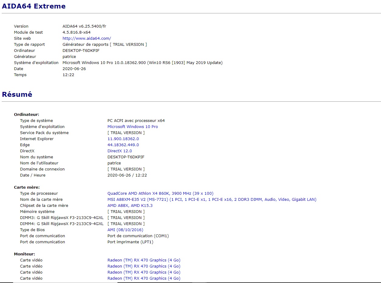 Je vous poste mon récap via AIDA64 en pièce-jointe. ( désolé pas réussi à mettre en entier )