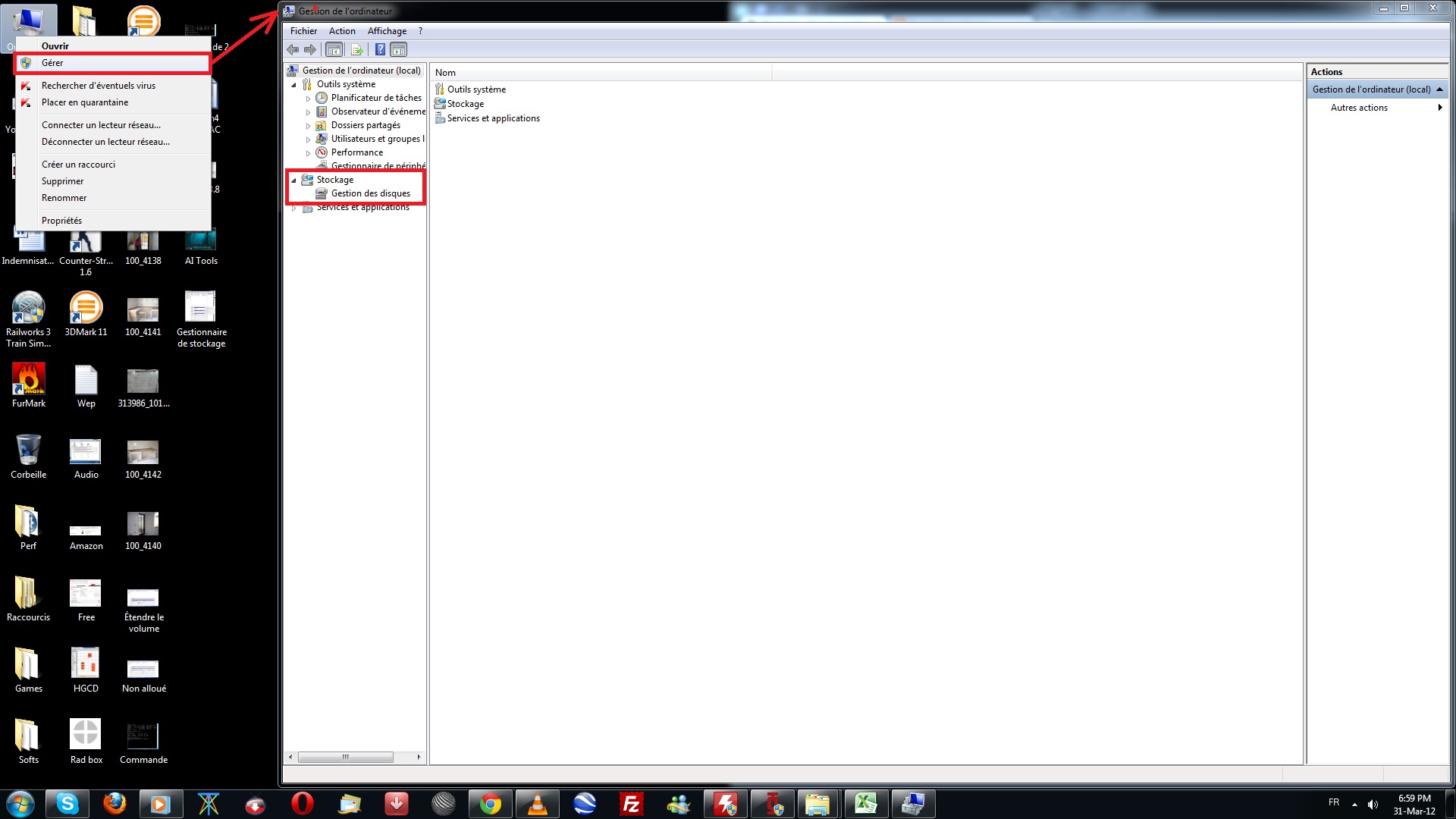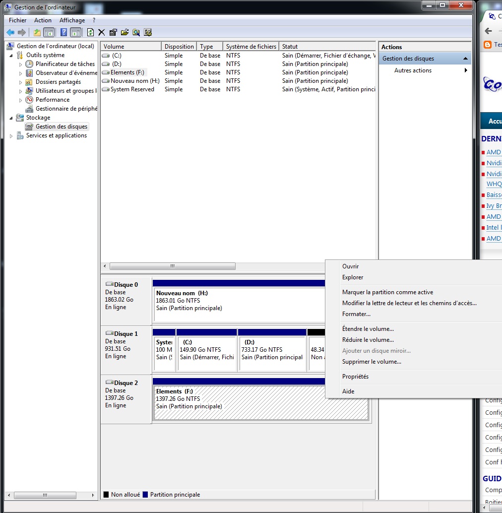 Clic droit sur ordinateur puis gérer, puis gestionnaire de stockage.