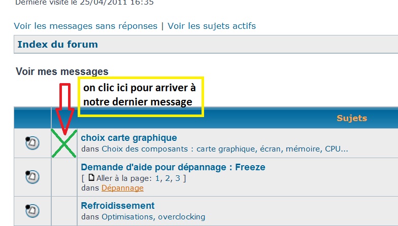 ce serait bien de mettre un lien qui nous y conduit direct ( au moins au dernier posté )