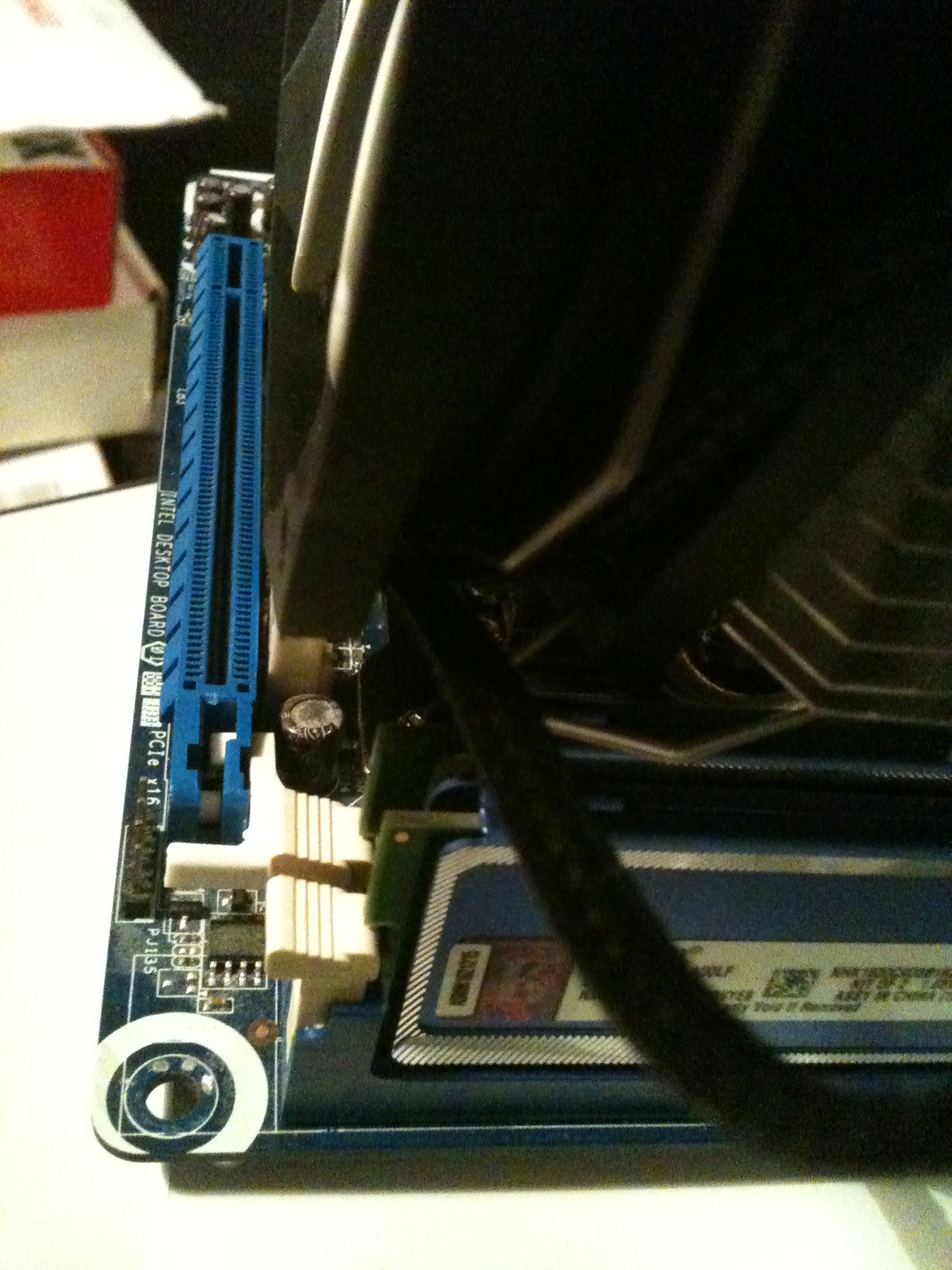 quant a ton ventirad, pourquoi avoir pris ce gros truc qui n'as pas l'air de ventiler grand chose, et qui est pas tres beau (avis perso, apres si t'aime..) ? ^^ perso pour un boitier ITX, le Cooler Master GeminII est parfait http://www.ldlc.com/fiche/PB00121455.html, ou meme le vertex http://www.ldlc.com/fiche/PB00104866.html ... apres, c'est que mon avis hein :biere: