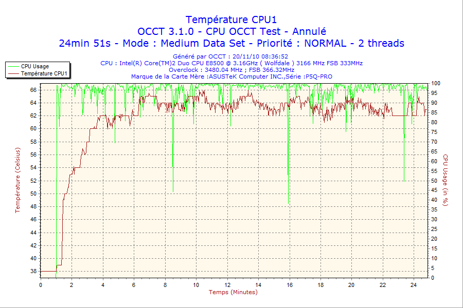 Test OCCT après avoir monté mon FSB de 10 puis 20%...