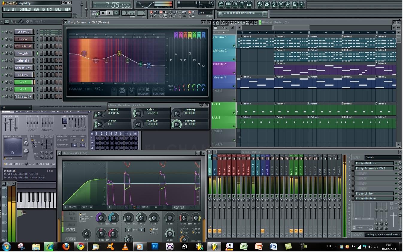 j'utilise FL studio 10 dans sa version signature (version qui comporte des banques de sons, effets et genérateurs de sons assez puissants).