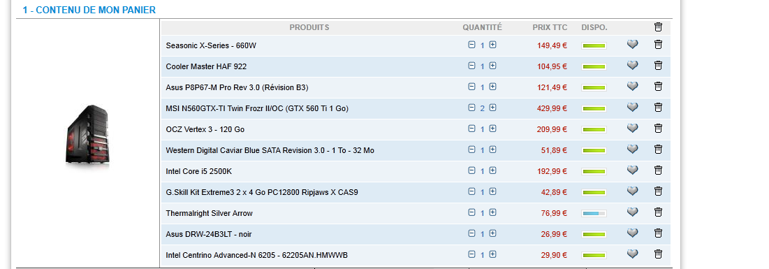 Carte graphique : Asus GTX580 Direct CU II (1536 Mo)..................445.9 euro
