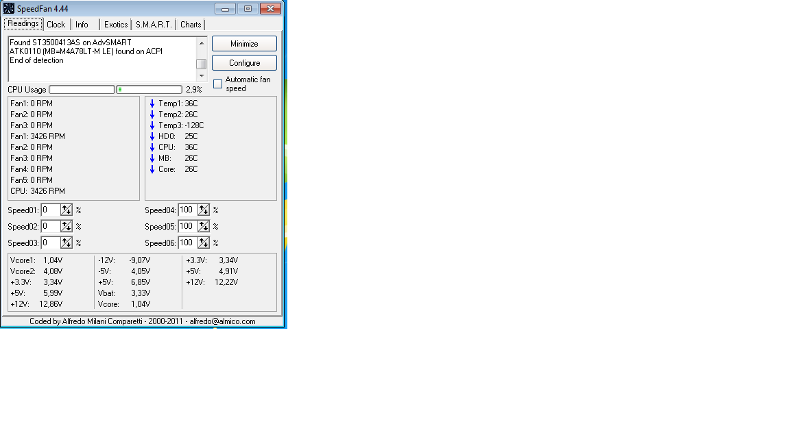 Je viens d'installer Speed Fan 4.44 car je voudrais baisser la vitesse de mon ventilo, il fait pas mal de bruit.