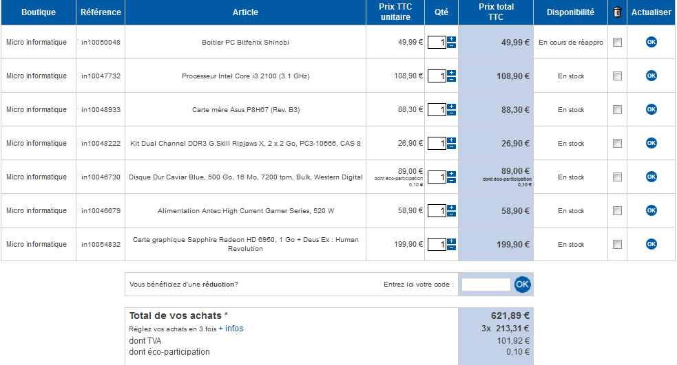 Sur ton panier les composant son beaucoup moins cher ( je crois que j'ai près de 70-100€ de différence ...)