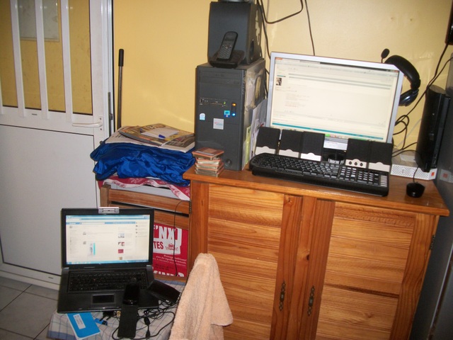 Voici donc le miens avec son jolis bordel , pour se qui se trouve derrière le bureau c'est top secret mais y'a du monde