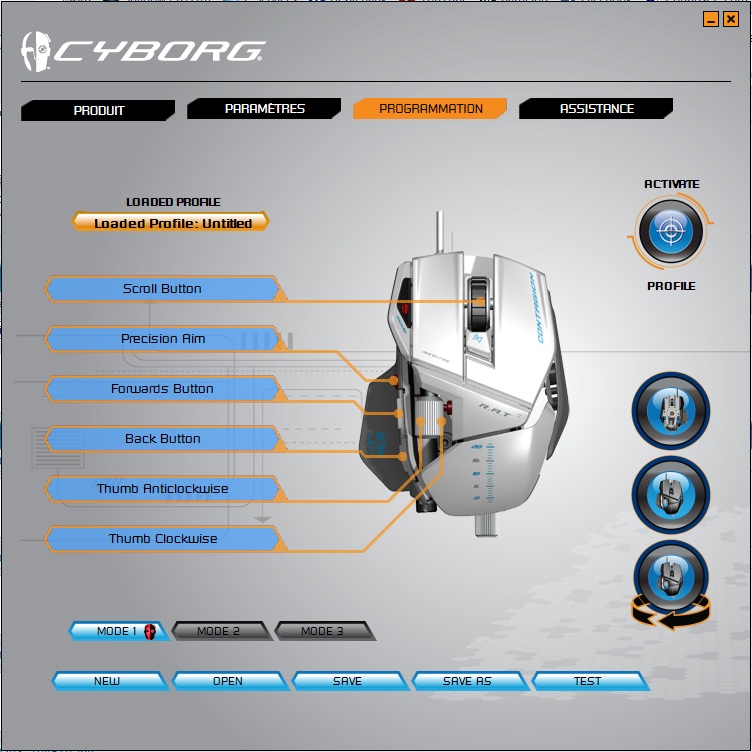 On retrouve également prés du click gauche un bouton qui permet de changer de profile (3 profiles dispo).
