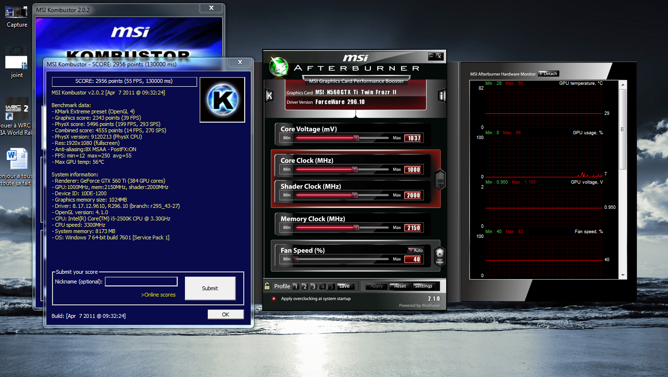 Carte graphique: Gtx 560 ti twin frozr II de chez nvidia mais vous le savez. Bientôt la deuxième pour le moi de juin