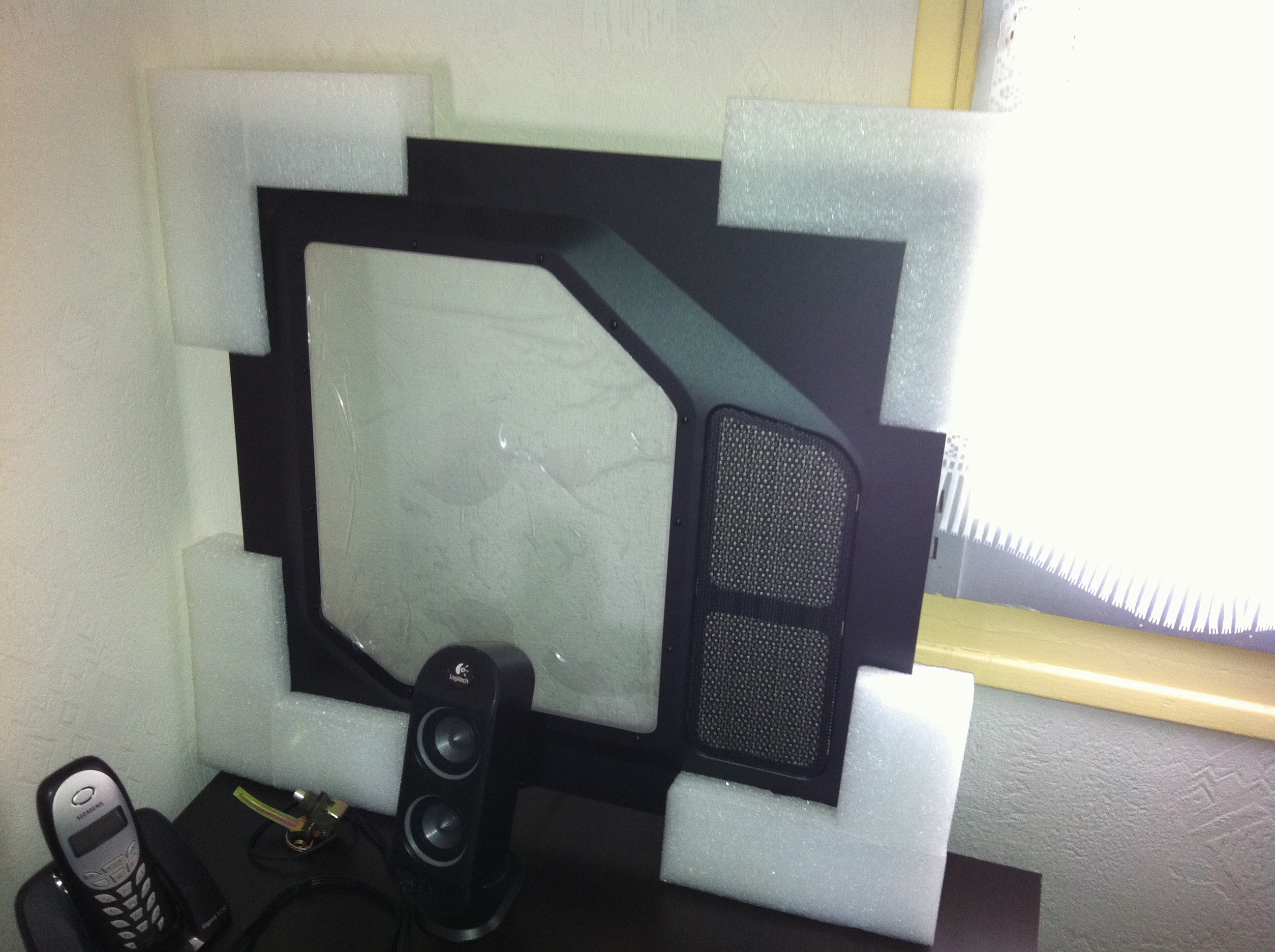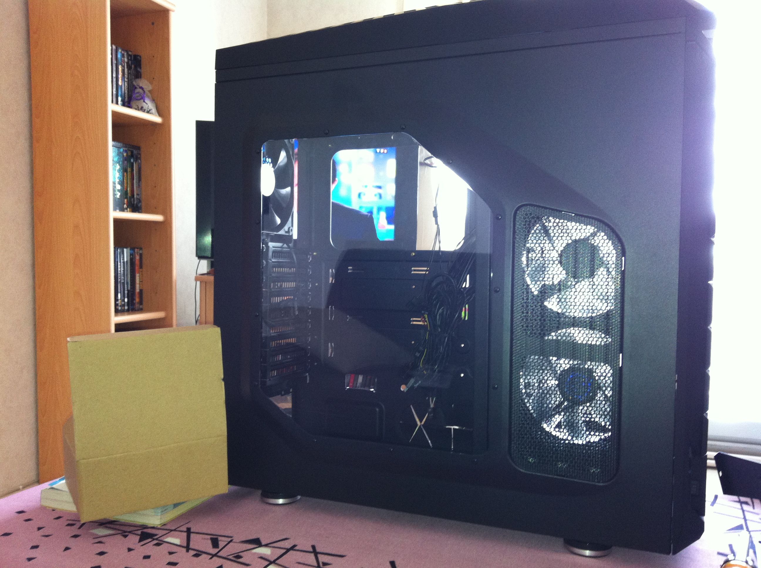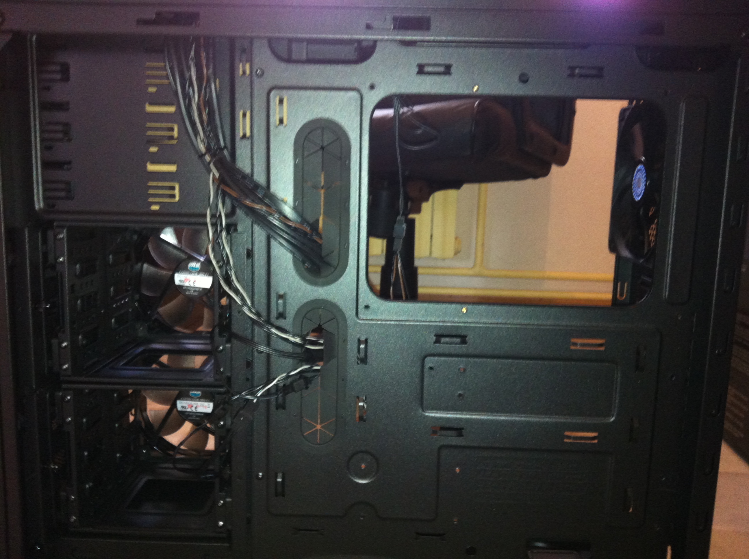 Petite vu par le petit trou de la face avant, on voit le silent wing2 et le bitfenix spectre pro en place ^^