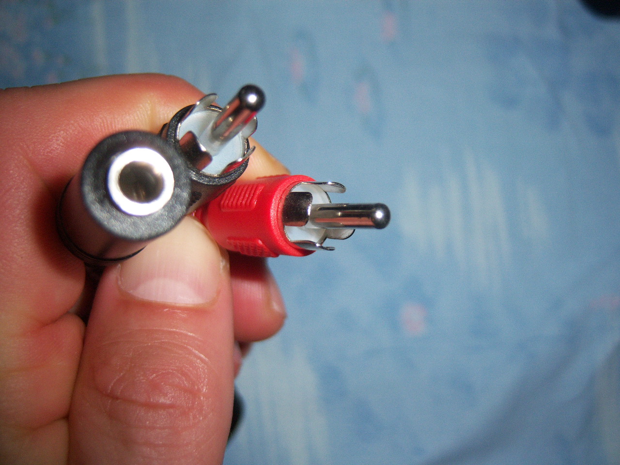 Sur les deux sorties de ta tv tu te procures un kit doubles prise rouge et blanche que tu relis à l'adaptateur et à la tv dans les couleur correspondantes ! ! !