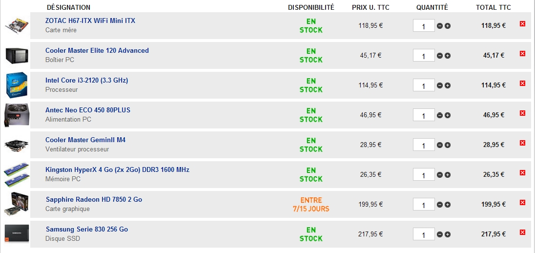 alors voila, j'ai dans le besoin de monter une petite configuration en Mini ITX.. voila mon petit panier, n'hesiter pas a donner des idee !