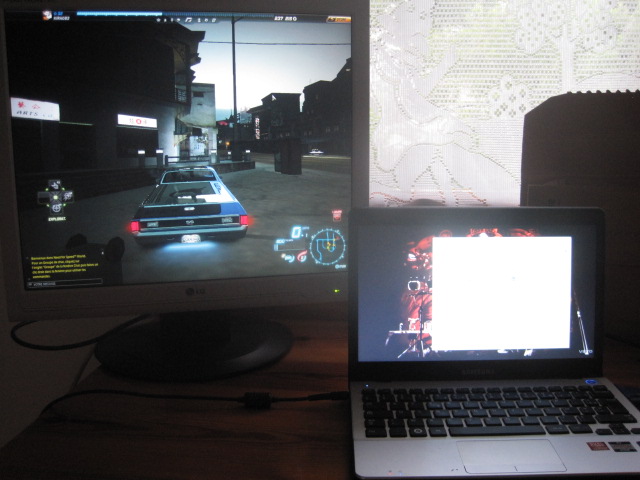 Quoique, essaie aussi de changer la résolution du jeu pour mettre les valeurs de ton écran de portable ou celles de ton écran TV.