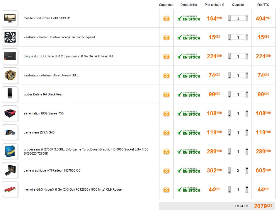 En gros je t'ai fais une cfg pr 2000e sur mat.net qui est le vpc le plus chère, tu px avoir facile 10% de moins en commandant chez amazon, qui propose en plus la Rolls des SAV (et de très loins).