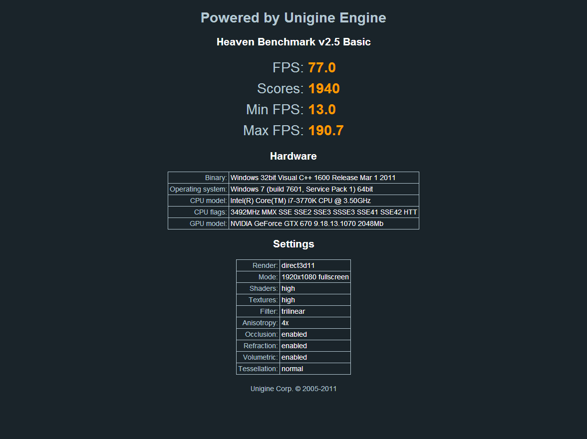 je vient de faire un benchmark avec Heaven DX11 et j'obtient ça : merci